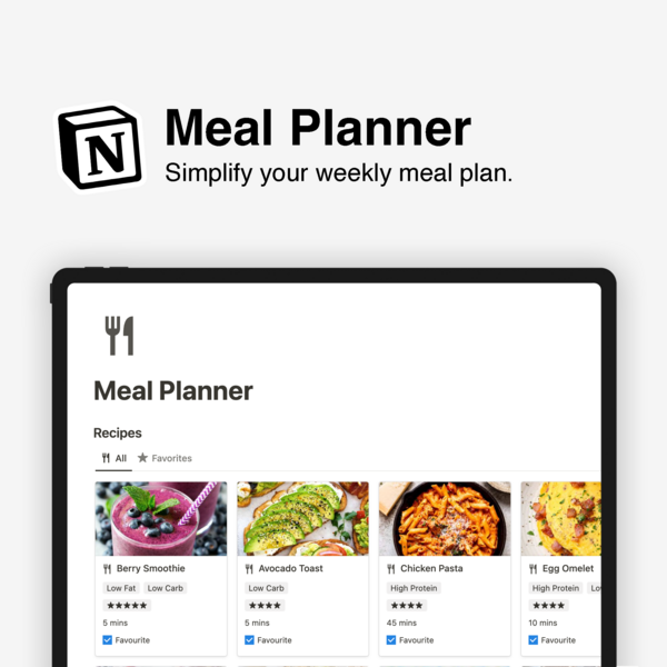 Simplify your meal planning with Notion Meal Planner. This tool unifies all your culinary needs in one place, making meal preparation and recipe organization effortless. Enjoy more time savoring your meals and less time planning them.